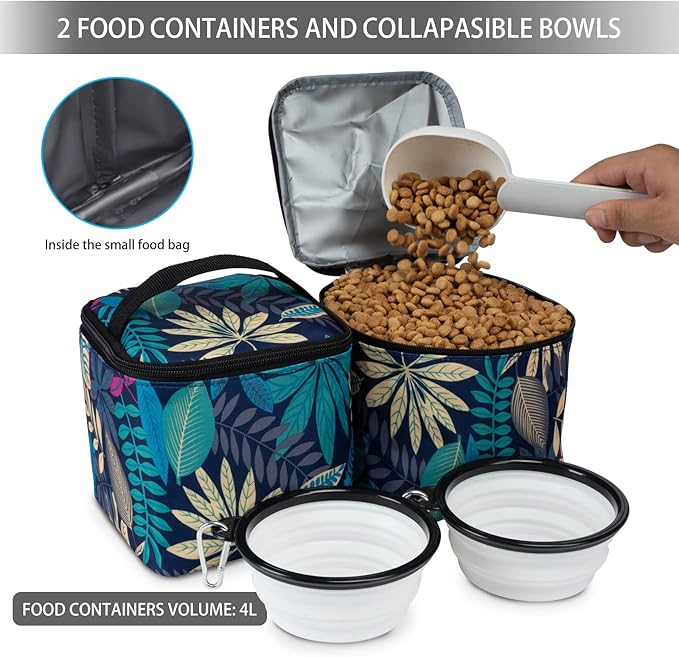 BAGLHER Pet Travel Bag, Double-Layer Pet Supplies Backpack (for All Pet Travel Supplies), Pet Travel Backpack with 2 Silicone Collapsible Bowls and 2 Food Baskets Hawaii -