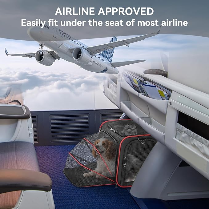 Petsfit Expandable Cat Carrier Dog Carriers,Airline Approved Soft-Sided Portable Pet Travel Washable Carrier for Kittens,Puppies,Removable Soft Plush mat and Pockets,Locking Safety Zippers