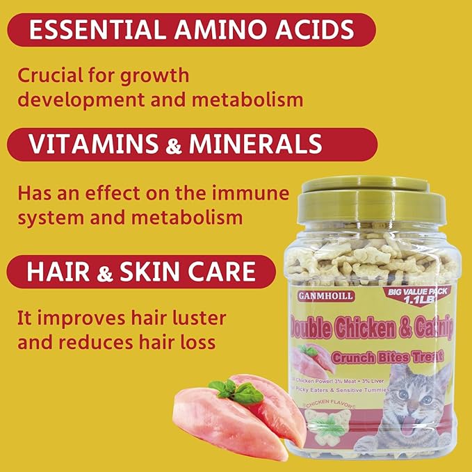 1.1lb / 500g Cat Grass Treats for Indoor Cats - 17.6 oz Natural Chicken Flavor, Healthy Snacks for All Life Stages, Crunchy Training Biscuits with Dental Care & Hairball Control -