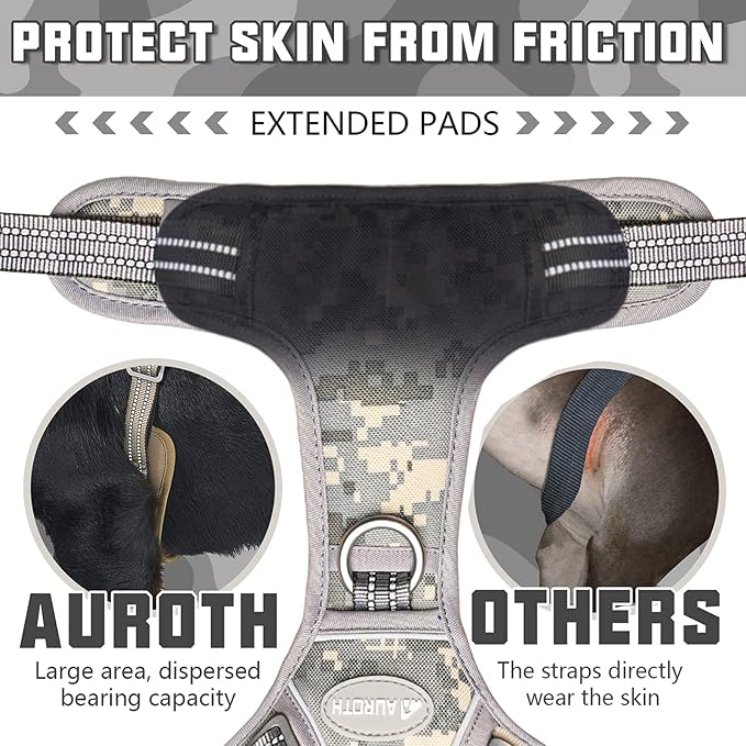 Auroth Tactical Dog Harness for Small Medium Large Dogs No Pull Adjustable Pet Harness Reflective K9 Working Training Easy Control Pet Vest Military Service Dog Harnesses XL Grey Camo -
