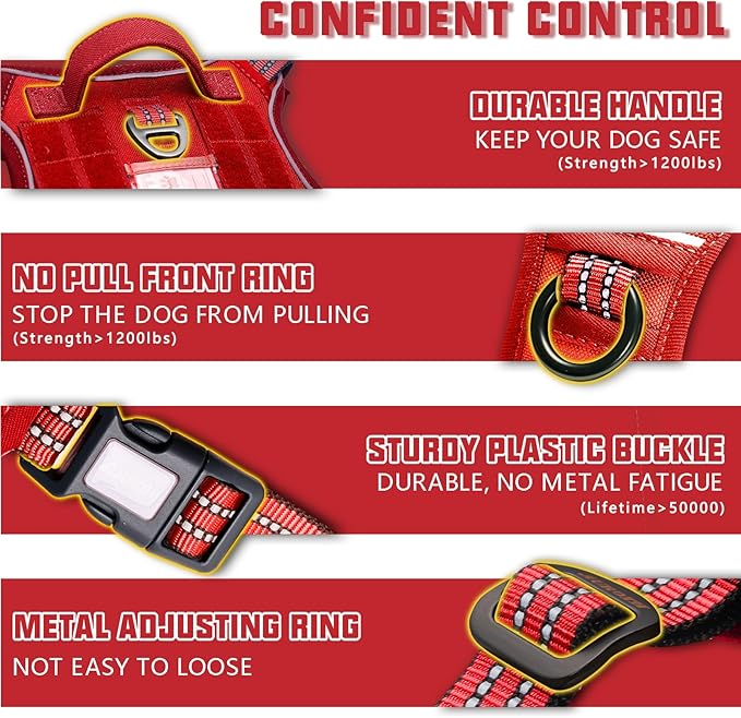 AUROTH Tactical Dog Harness for Large Dogs No Pull Adjustable Pet Harness Reflective K9 Working Training Easy Control Pet Vest Military Service Dog Harnesses Red S -