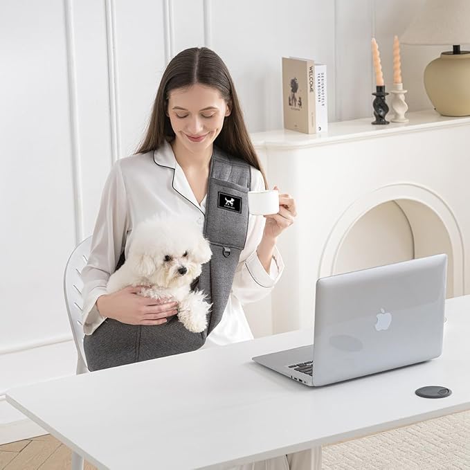 Tomkas Small Dog Sling Carrier - Zipper Pocket & Adjustable Strap - for 3-10 lbs Pets(Grey) -