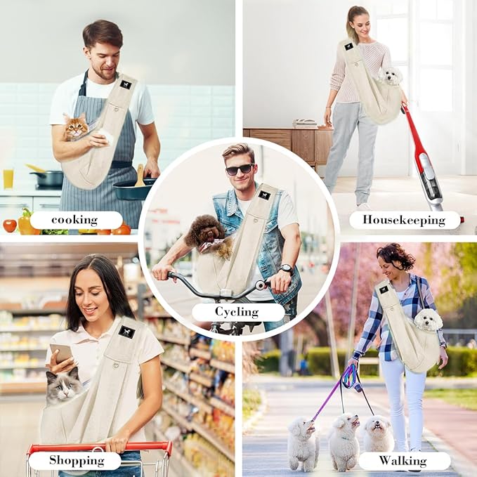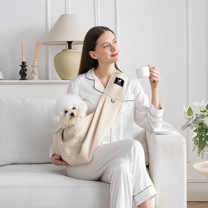 Dog & Cat Carrier Sling, Adjustable Soft Padded Shoulder Puppy Carrier, Hands-Free Dog Carrier Bag with Double Safety Buckles Premium Material for Outdoor Travel (Apricot, M) -