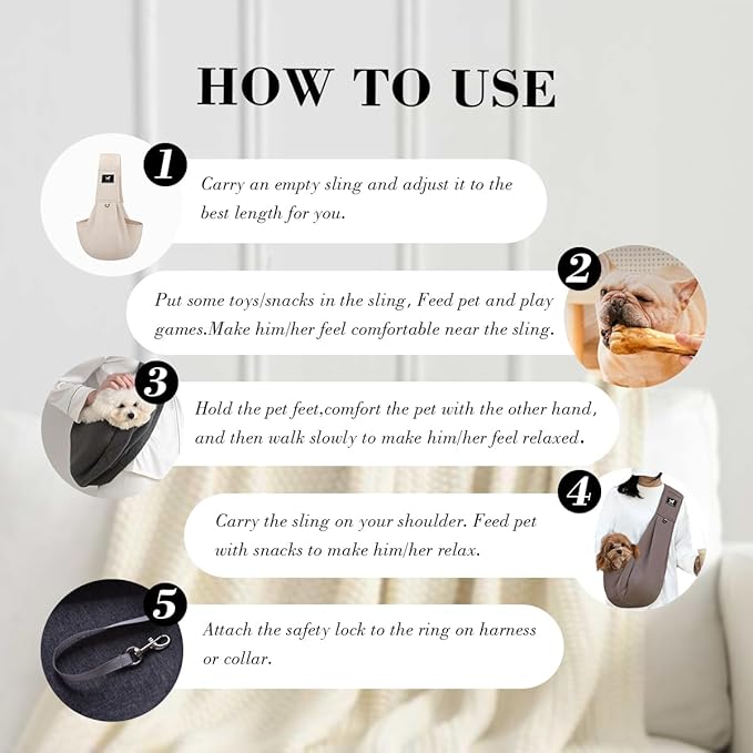 Dog & Cat Carrier Sling, Adjustable Soft Padded Shoulder Puppy Carrier, Hands-Free Dog Carrier Bag with Double Safety Buckles Premium Material for Outdoor Travel (Apricot, L) -
