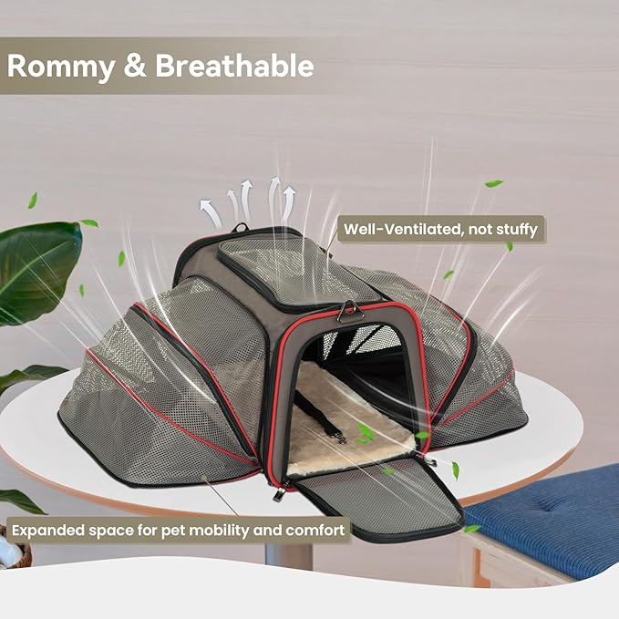 Petsfit Airline Approved Expandable Large Cat Carrier Small Dog Carrier, 17" x 11" x 11" Collapsible Portable Soft-Sided Airplane Pet Carrier Bag with Two Extension, Fit for Outdoor Use -