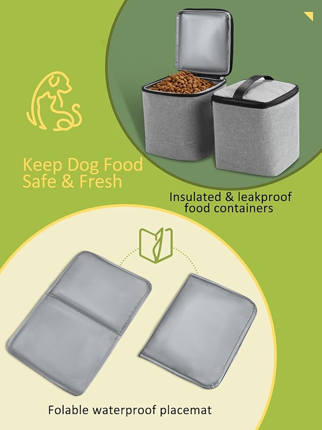 Dog Travel Bag, 25L Airline Approved Dog Travel Backpack for Pet Travel Accessories with 2 Food Storage Containers, 2 Foldable Bowls for Short Trips, Grey -