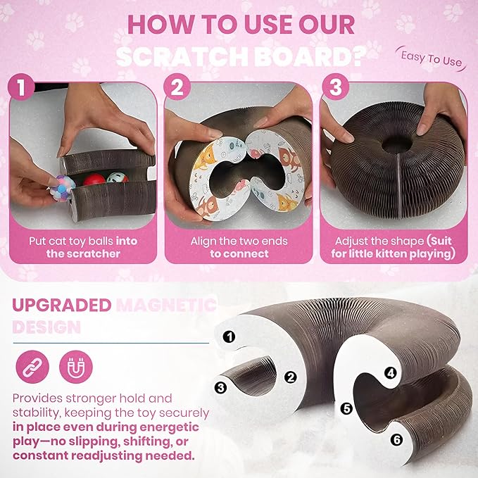 Fin & Jacky Magic Organ Cat Scratcher Board Toy, Upgraded Magnets & Durable High-Density Cardboard for Stability, Eco-Friendly, Kitty Kurlz Round Cat Scratcher, Interactive Indoor Playboard