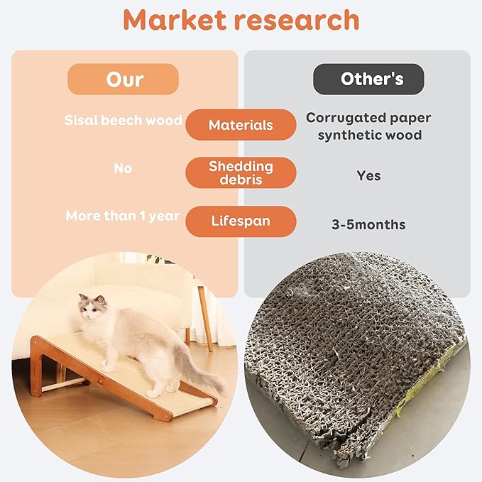 Cat Scratching Post - Beechwood Base, 26.8" Natural Sisal Woven Cat Scratch Pad, Cat Scratching Board,Durable Cat Scratcher for Indoor Cat, Furniture Protector for Cats' Clawing and Play -