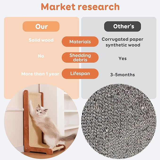Large Cat Scratching Post for Indoor Cats,26.8'' Solid Wood Frame Natural Sisal L Shape Cat Scratch Pad, Vertical Cat Scratcher,Cat Scratching Board Cat Scratch Post,Perfect Cat Furniture -