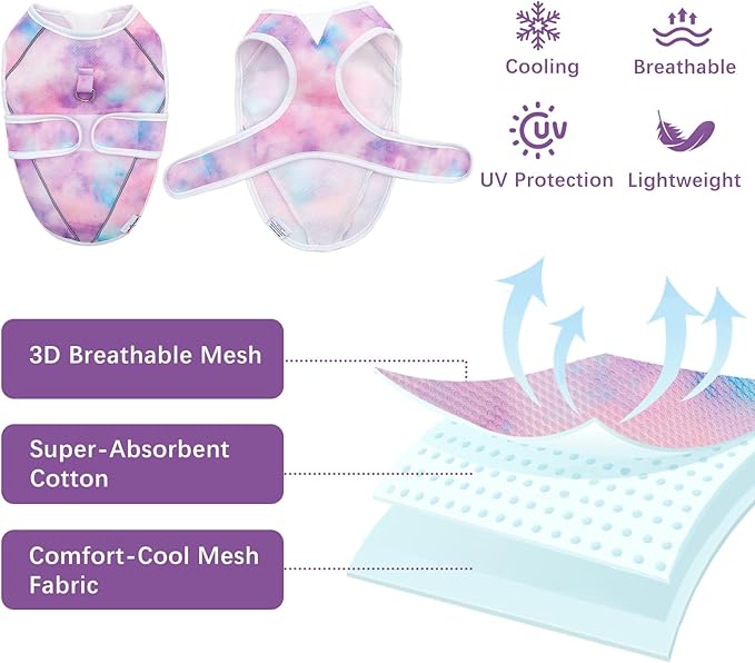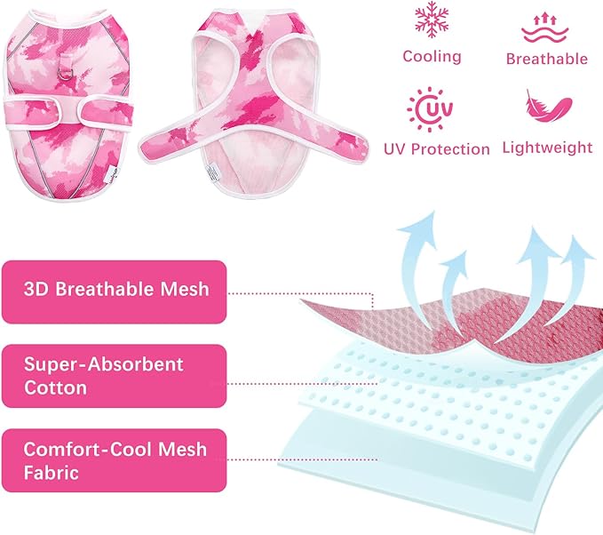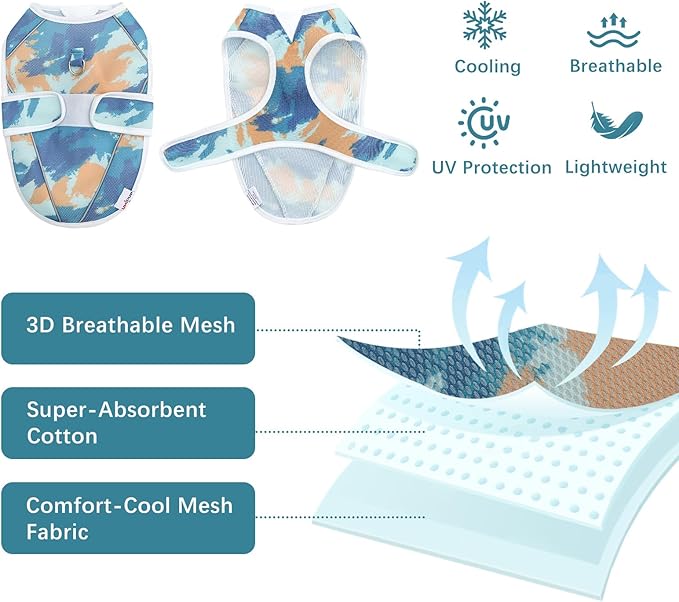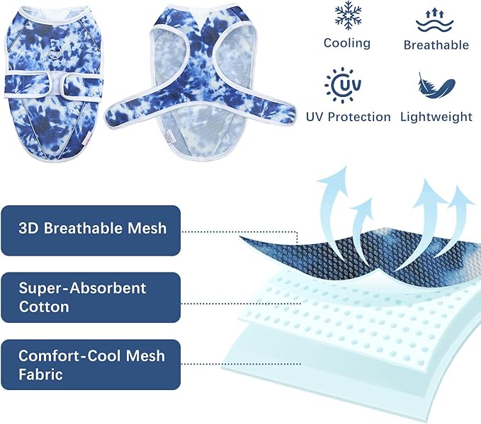 Dog Cooling Vest – Lightweight Pet Cooling Shirt 3D Breathable Mesh, Reflective Strips & UV Protection for Walking, Hiking, Park – Adjustable Fit Dog Cooler Jacket with D-Ring U-DCV03S -