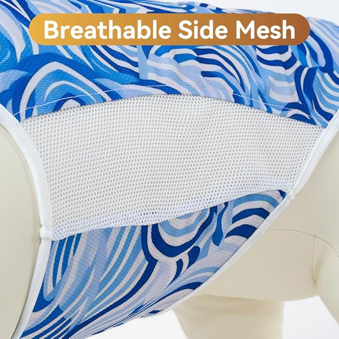 Sun Protection Dog Shirts, Breathable Cooling Vest for Summer Lightweight Quick Dry and Insert Prevention Cotton Tank Top for Small Medium Large Pet Outdoor, Hiking (Blue Wave, Large) -