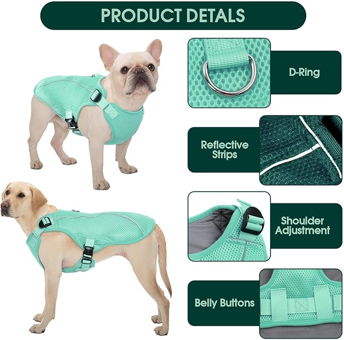 Kuoser Dog Cooling Vest Harness, Small Dog Cooler Jacket with Adjustable Buckle for Outdoor Beach, Hiking, Training Green S -