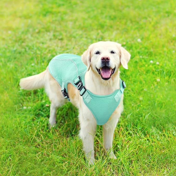 Kuoser Dog Cooling Vest for Large Dogs, Lightweight Doggie Cooler Jacket Breathable Mesh Pet Cooling Shirts Reflective Puppy Cool Harness for Beach, Hiking, Walking Green XXL -