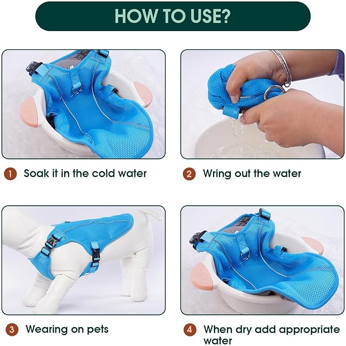 Kuoser Dog Cooling Vest Harness, Small Puppy Cooler Jacket with Adjustable Buckle for Outdoor Beach, Hiking, Training Blue S -