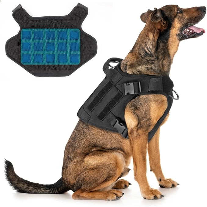 Tactical Dog Cooling Harness Vest with Gel Ice Packs, No Pull Cooling Vest for Summer, Dog Harness with Handle, Adjustable Dog Vest Harness for Summer Walking Hiking Training (Medium) -