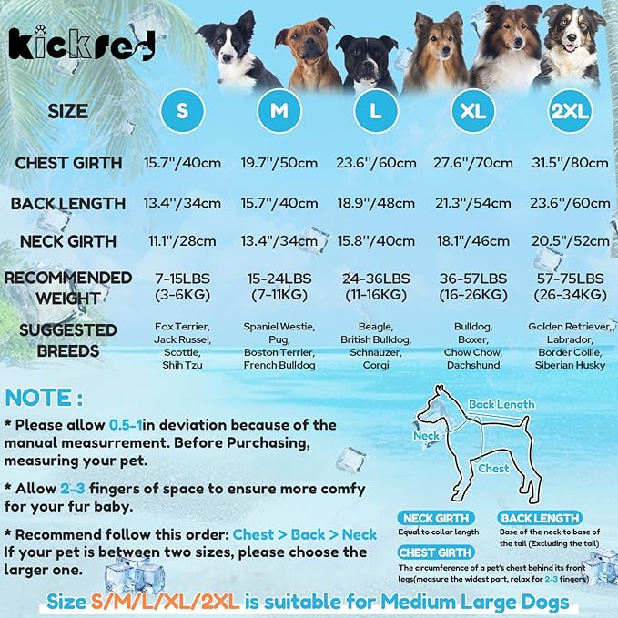 2 Pack Dog Shirts, Ice Pet Vest Dog Clothes for Instant Cooling, Ultra Lightweight Breathable Sleeveless T-Shirts for Large Dogs, Purple+Blue (M) -