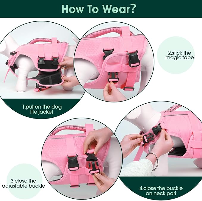 Kuoser Dog Life Jacket High Flotation, Reflective Dogs Life Vest for Swimming Boating, Adjustable Small Medium Large Dog lifejacket, Lightweight Dogs Life Preserver Rescue Handle Spring Summer Pool Kuoser Dog Life Jacket High Flotation, Reflective Dogs Life Vest for Swimming Boating, Adjustable Small Medium Large Dog lifejacket, Lightweight Dogs Life Preserver Rescue Handle Spring Summer Pool