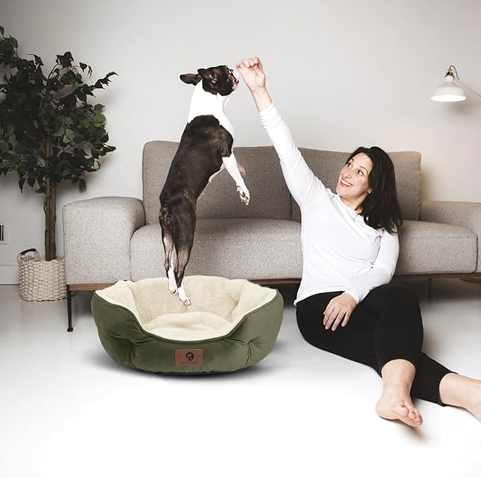 Asvin Small Dog Bed for Small Dogs, Cat Beds for Indoor Cats, Pet Bed for Puppy and Kitty, Extra Soft & Machine Washable with Anti-Slip & Water-Resistant Oxford Bottom, Green, 20 inches -