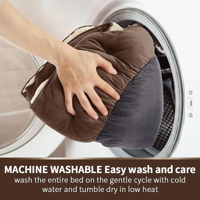 Asvin Medium Dog Bed for Medium Dogs, Cat Beds for Indoor Cats, Pet Bed for Puppy and Kitty, Extra Soft & Machine Washable with Anti-Slip & Water-Resistant Oxford Bottom, Brown, 25 inches -
