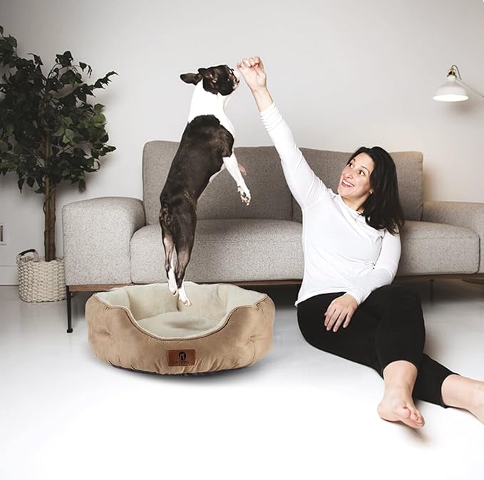 Asvin Medium Dog Bed for Medium Dogs, Cat Beds for Indoor Cats, Pet Bed for Puppy and Kitty, Extra Soft & Machine Washable with Anti-Slip & Water-Resistant Oxford Bottom, Light Brown, 25 inches -