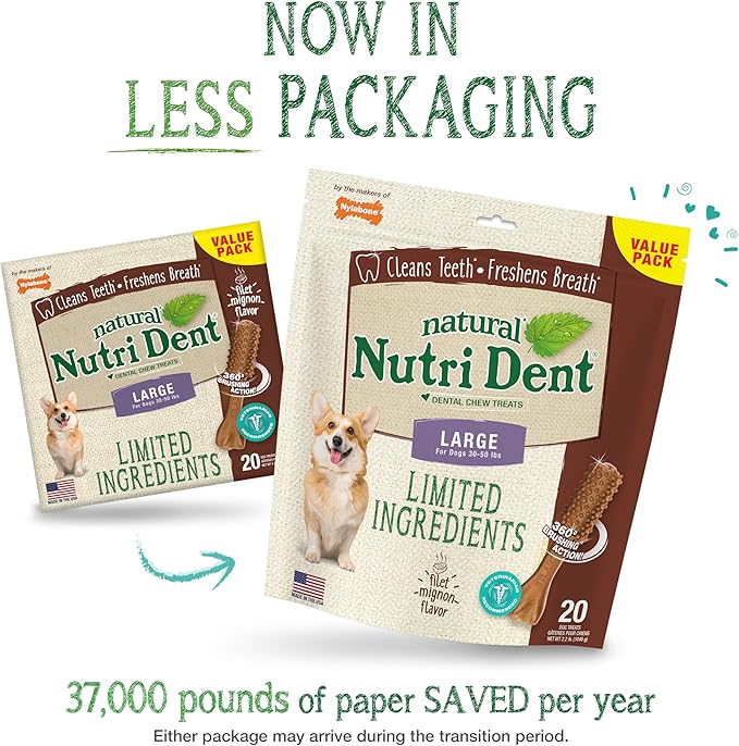 Nylabone Nutri Dent Dog Dental Chews - Natural Dog Teeth Cleaning & Breath Freshener - Dental Treats for Dogs - Filet Mignon Flavor, Large (20 Count) -