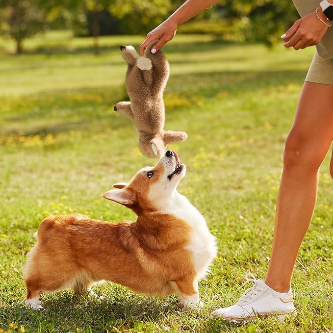 No-Stuffing Bunny Squeaky Dog Toy for Aggressive Chewers, Tear-Resistant Plush Puppy Teething Toy to Keep Them Busy, Tough Interactive Tug of War & Dental Chew for Small Medium Large Dogs -
