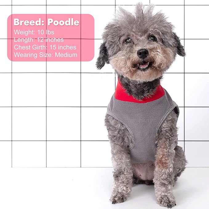 cyeollo 2 Pack Dog Sweater Sweatshirt Stretchy Fleece Vest Pullover Dog Jacket with Reflective Stripe Lightweight Pet Coats Sweaters for Small Dogs Grey & Red -