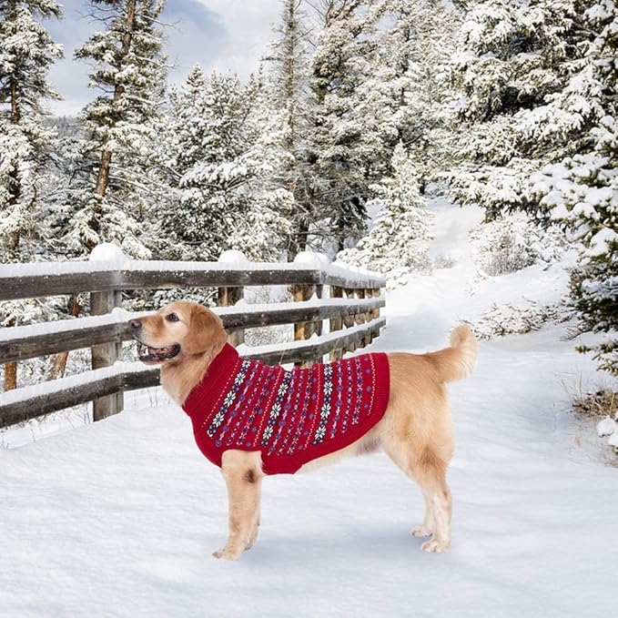 BINGPET Dog Sweater - Christmas Winter Warm Dog Clothes - Turtleneck Sweater for Small Medium Large Dogs - Classic Snowflake Doggy Knitwear Clothes -