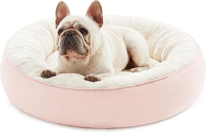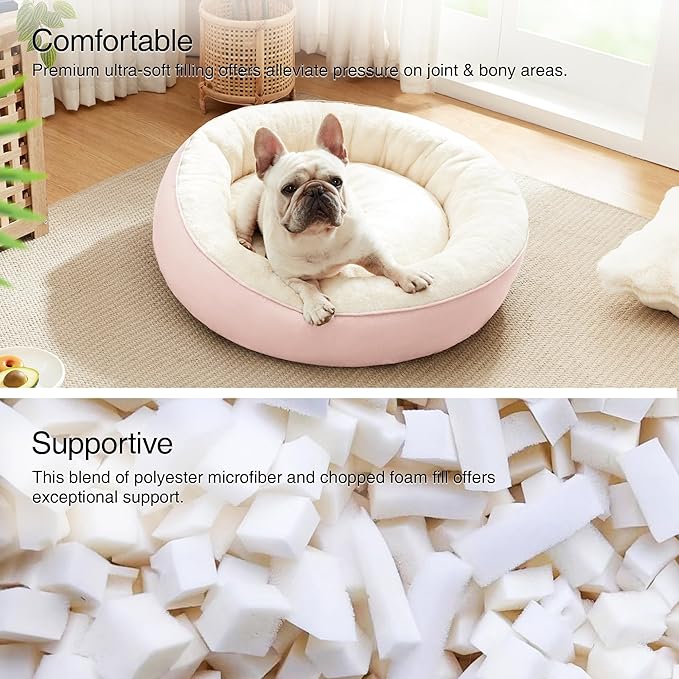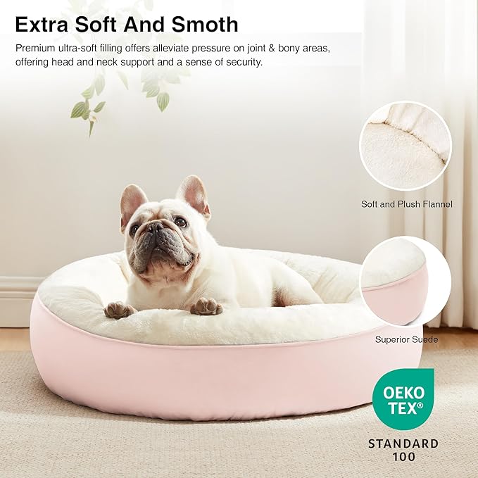 Love's cabin Round Donut Cat and Dog Cushion Bed, 25in Pet Bed for Small or Medium Dogs, Anti-Slip & Water-Resistant Bottom, Soft Durable Fabric Pet Beds, Washable Calming Cat & Dog Bed Pink -