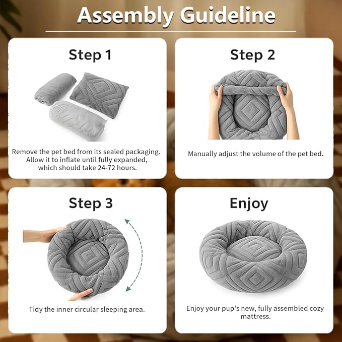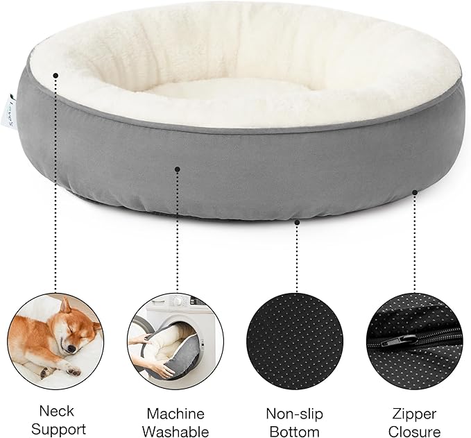ShinHye Cat Bed - Washable Donut Bed for Cats and Small Dogs, Calming Round Pet Bed with Non-Slip Bottom, Indoor Comfort for Puppy & Kitten(LX-Grey-32x32) -