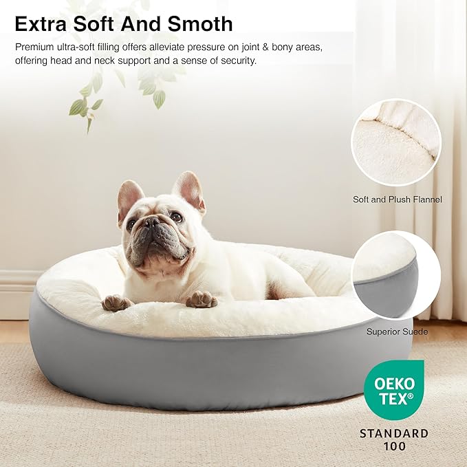 Love's cabin Round Donut Cat and Dog Cushion Bed, 25in Pet Bed for Small or Medium Dogs, Anti-Slip & Water-Resistant Bottom, Soft Durable Fabric Pet Beds, Washable Calming Cat & Dog Bed Grey -