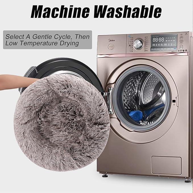 BALANCE Round Cat Beds for Indoor Cats - Donut Dog Bed for Medium Dogs, Washable Medium Pet Bed, Round Fluffy Plush Faux Fur Cat Bed with Anti-Slip Bottom -