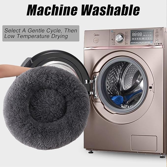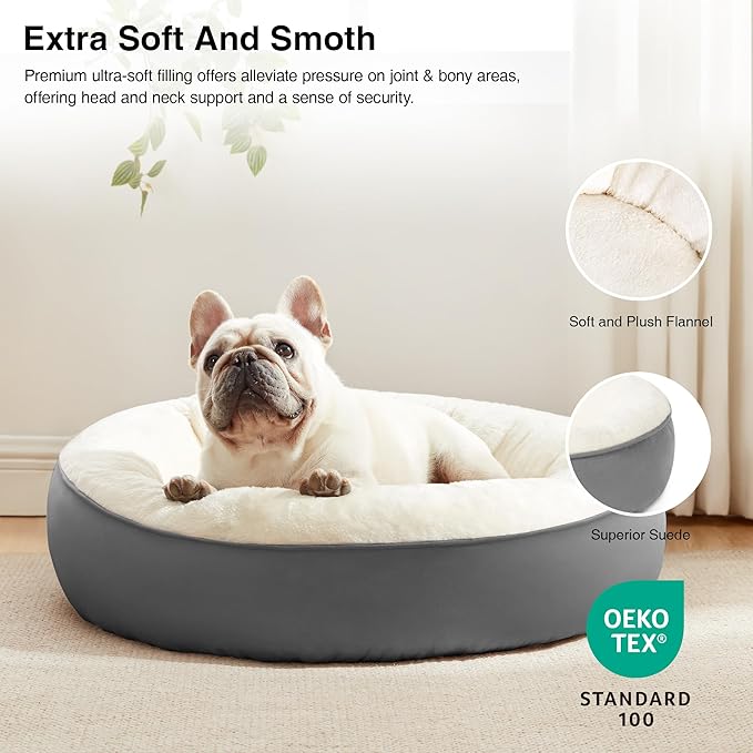 23 inches Donut Dog Bed for Small Dogs - Calming Washable Round Puppy Bed with Removable Cover, Fluffy Plush Pet Bed for Cats & Dogs, Fits up to 25 lbs Pets (Dark Grey,Small) -
