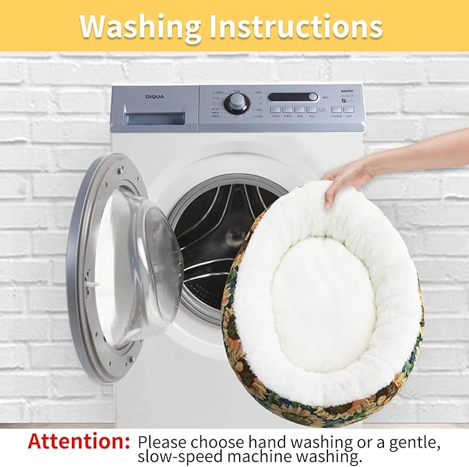 Circular Calming Dog & Cat Bed Anti-Anxiety Plush Dog Bed Washable Pet Bed with Anti Slip Backing Donut Cuddler with Cute Jacquard Patterns for Cat and Small Puppy 20" (X-Small, Sunflower) -