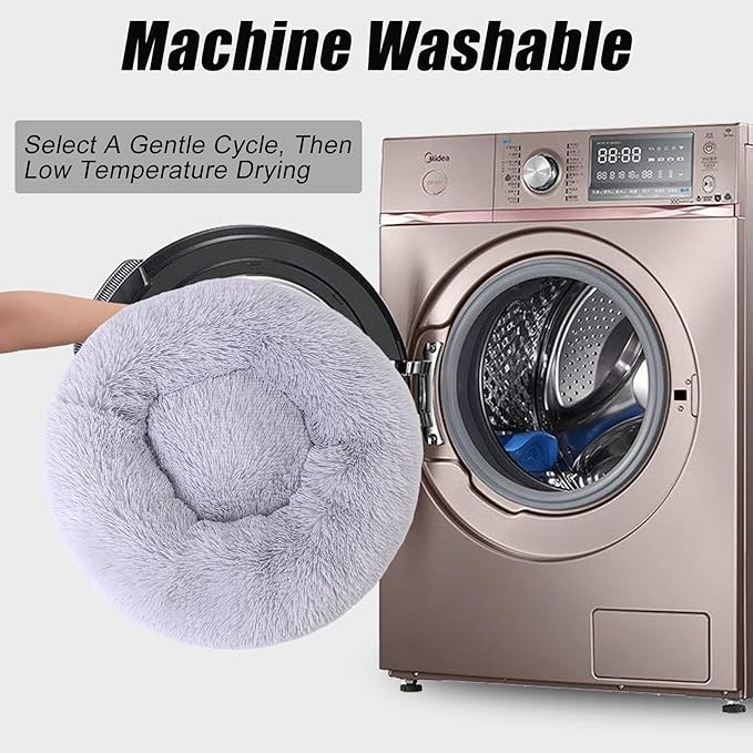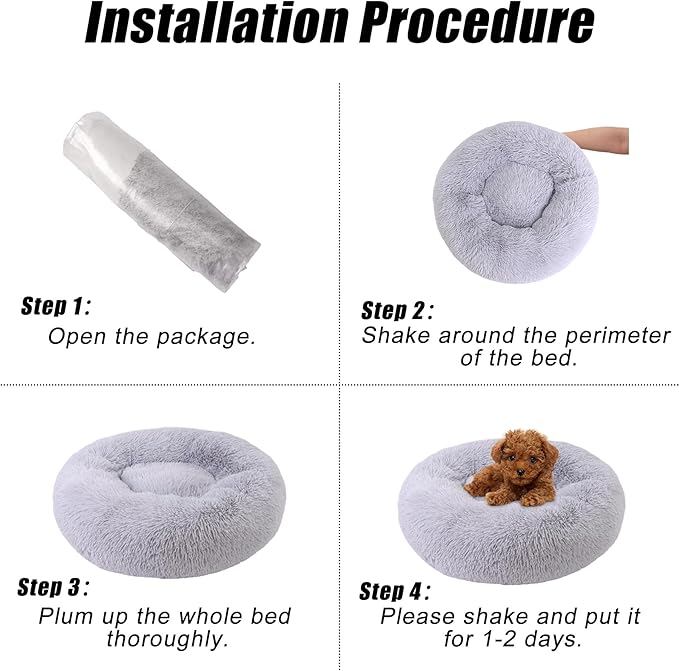 Calming Dog Bed, Dog Beds Fits up to 15 lbs Pets, Fluffy Donut Dog & Cat Bed Washable, Round Anti Anxiety Dog Bed, Small Dog Bed with Non-Slip Bottom (Light Grey, 20" x 20") -