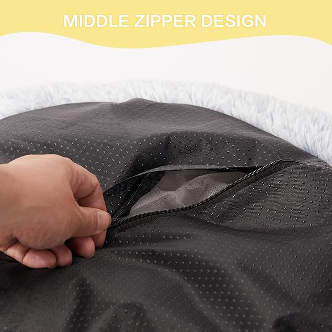 ShinHye Cat Bed - Washable Donut Bed for Cats and Small Dogs, Calming Round Pet Bed with Non-Slip Bottom, Indoor Comfort for Puppy & Kitten(ZJ-Grey-23x23) -