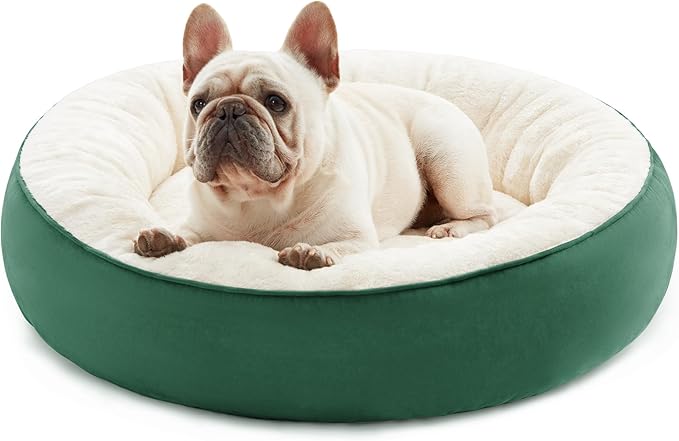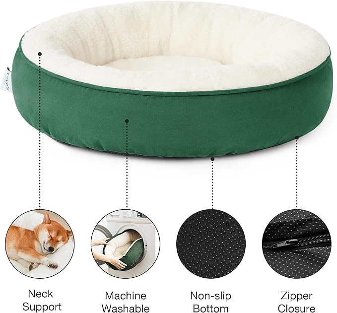 Love's cabin Round Donut Cat and Dog Cushion Bed, 25in Pet Bed for Small or Medium Dogs, Anti-Slip & Water-Resistant Bottom, Soft Durable Fabric Pet Beds, Washable Calming Cat & Dog Bed Green -