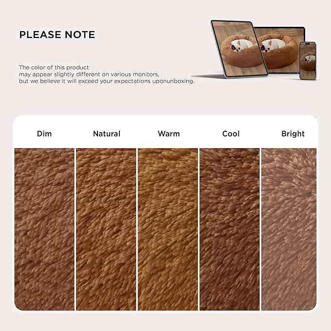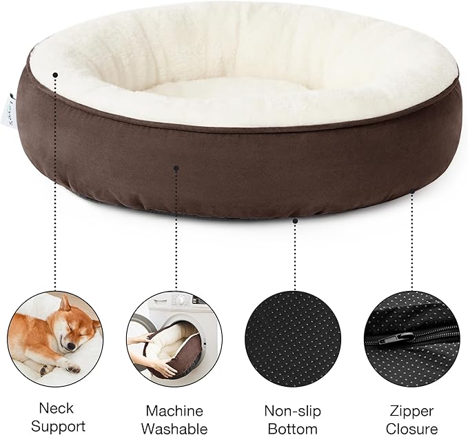 Bedfolks Calming Donut Dog Bed, 45 Inch Round Plush Bed for Extra Large Dogs, Anti-Anxiety, Washable with Non-Slip Bottom (Brown, Extra Large) -
