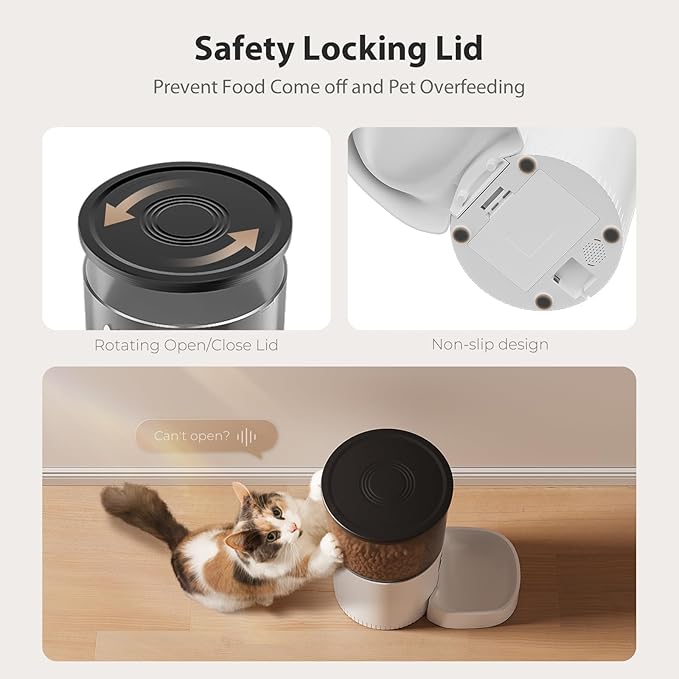 Automatic Cat Feeders, 3L Timed Cat Dry Food Dispenser, Dual Power Supply, Programmable Portion Size, Auto Pet Feeder for Cats and Small Dogs -