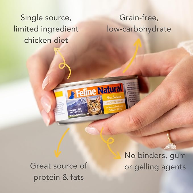 Feline Natural New Zealand Canned Catfood Wet Food, High-Meat, Low-Carb, & Grain Free Cat Food Wet, Chicken Feast, 3 oz, Pack of 24 -