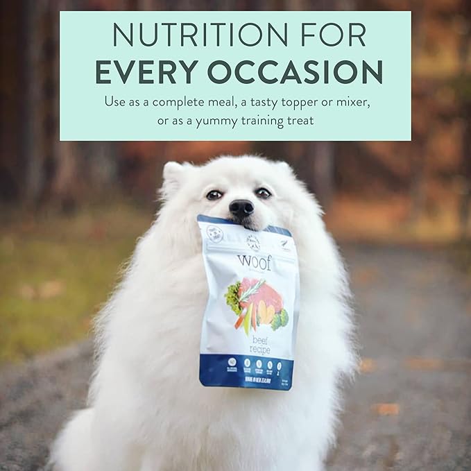 Woof - Air Dried Dog Food, Toppers for Dry Food, High Protein, Natural Dog Food, Limited Ingredient Recipe Dry, Beef, 3.5 oz -
