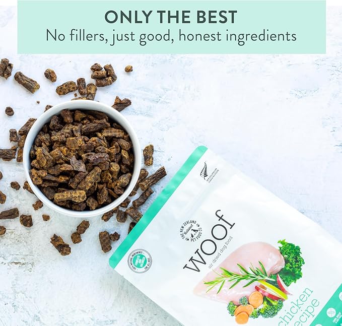 WOOF Air Dried Dog Bites - Chicken Recipe Dog Food High Protein Toppers for Dry Dog Food, Healthy Dog Food,26.5oz -
