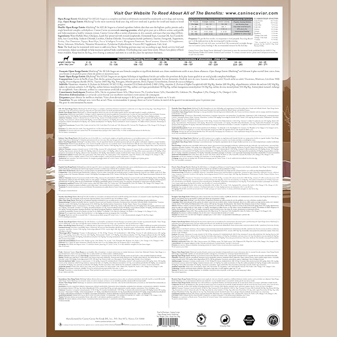 Canine Caviar - Open Range: Water Buffalo & Chickpea Alkaline Dry Dog Food, Limited Ingredients, Gluten-Free, Based on Science & Research, Veterinary Alternative Diet (22 Pound Bag) -