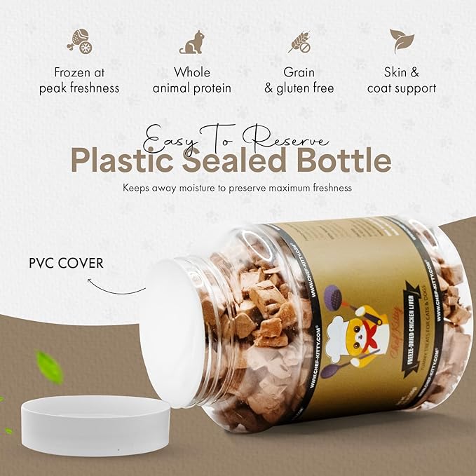 Freeze-Dried Chicken Liver Treats for Cats & Dogs – 100% Human Grade, Single Ingredient, High-Protein, Healthy Snack – No Additives or Preservatives – 3.1oz - Inspected & Tested in USA -