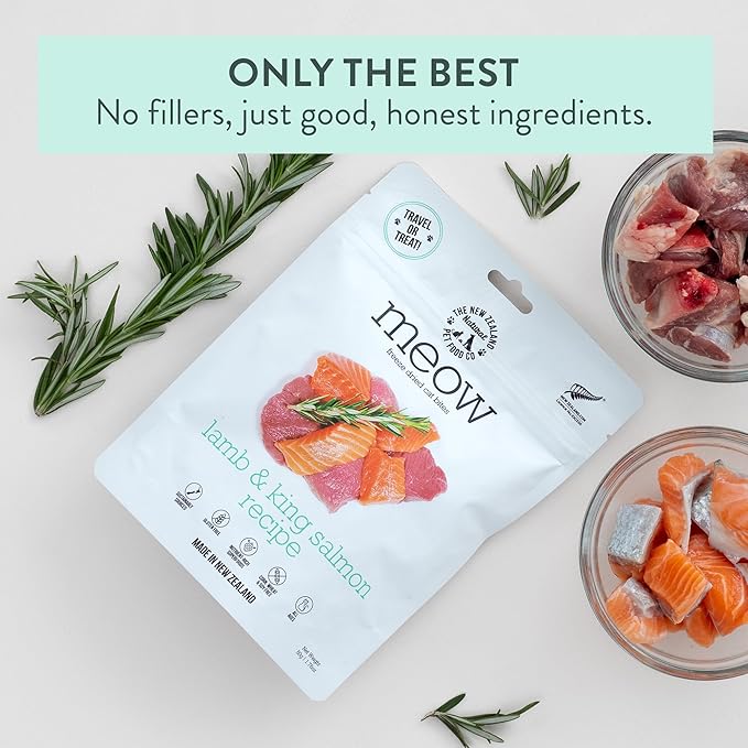 Meow Freeze Dried Cat Food - Lamb & King Salmon Recipe,High Protein Cat Treats,Meals & Toppers,Dry Cat Food,9.9oz -