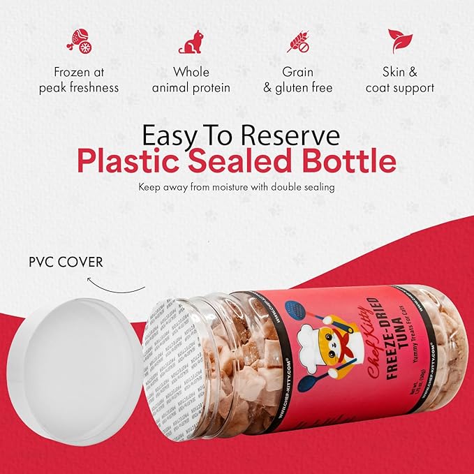 Freeze-Dried Tuna Treats for Cats & Dogs – 100% Wild Caught, Single Ingredient, High-Protein, Healthy Snack – No Additives or Preservatives – 1.7oz - Inspected & Tested in USA -