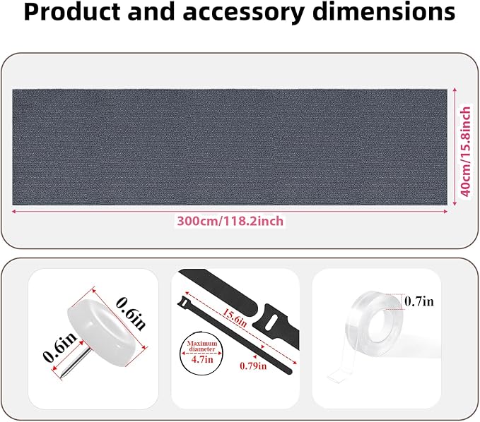 118.2"x15.8" Cat Scratching Mat, Self-Adhesive Cat Scratch Carpet, Cat Scratch Furniture Protector, DIY Climbing Cat Scratcher for Cat Tree Shelf Shelve, Couch Furniture Protector -