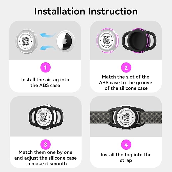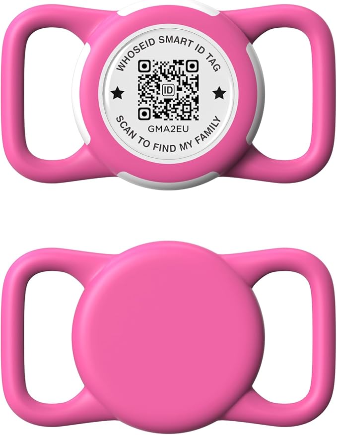 QR Code Airtag Holder, Scan QR Code Send Location Alert Email, Waterproof Full Body Protection Anti-Lost Air Tag Case, Airtag Accessories for Dog, Cats, Collar, Backpack (Pink, Regular) -