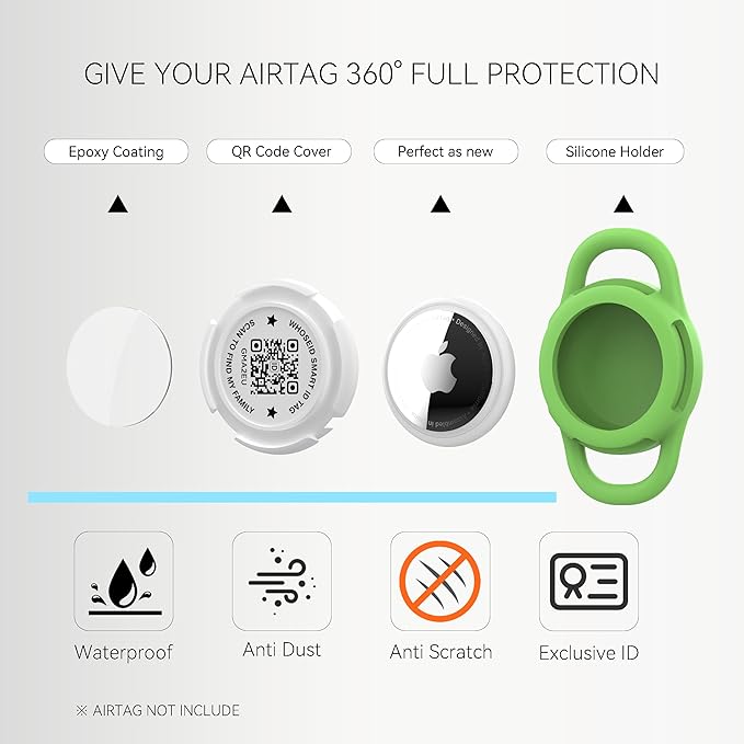QR Code Airtag Holder, Scan QR Code Send Location Alert Email, Waterproof Full Body Protection Anti-Lost Air Tag Case, Airtag Accessories for Dog, Cats, Collar, Backpack (Green, Small) -