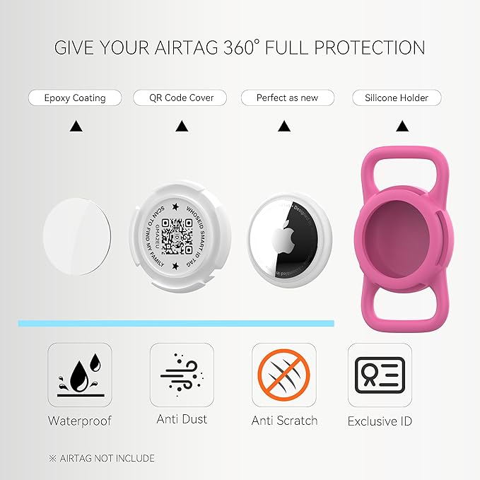 QR Code Airtag Holder, Scan QR Code Send Location Alert Email, Waterproof Full Body Protection Anti-Lost Air Tag Case, Airtag Accessories for Dog, Cats, Collar, Backpack (Rose, Regular) -